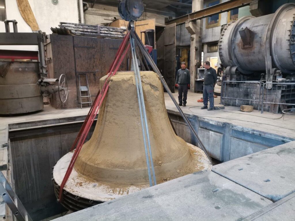 Zunächst wurde nun der Mantel der falschen Glocke abgehoben und das Entfernen der falschen Glocke und Ausschmelzen dieser vollzogen Anfang/Mitte November und nun geht es in den finalen Schritt.