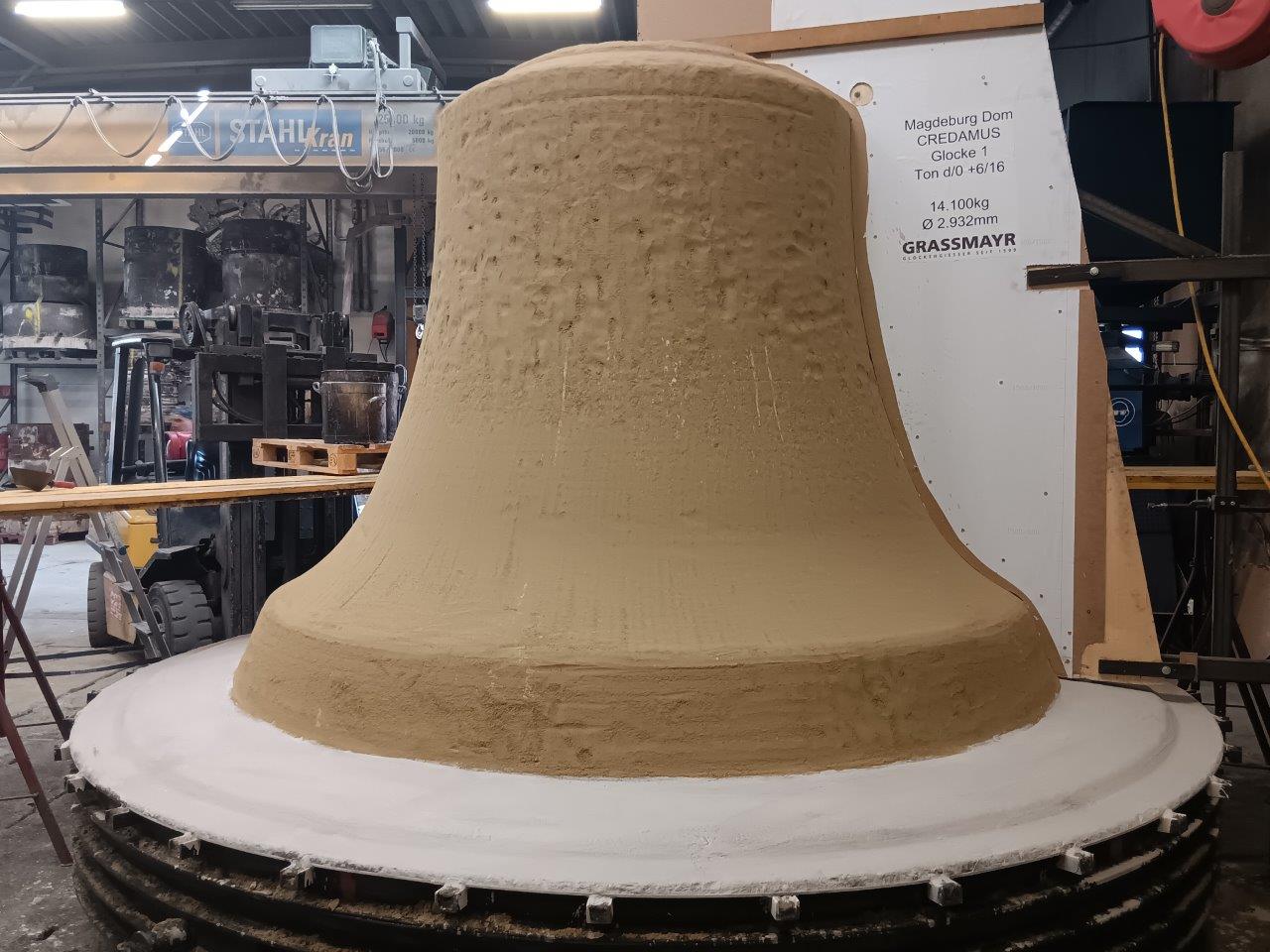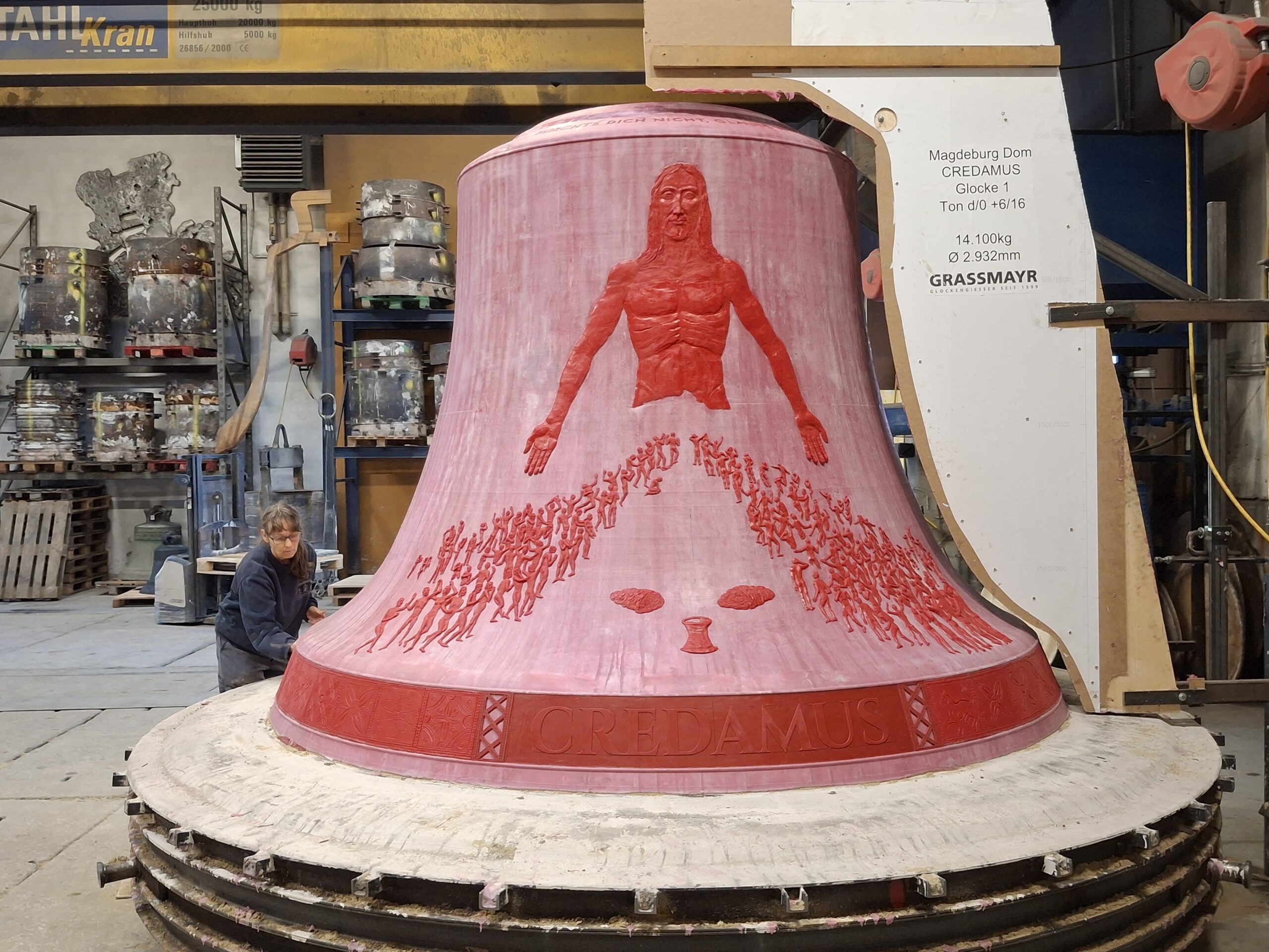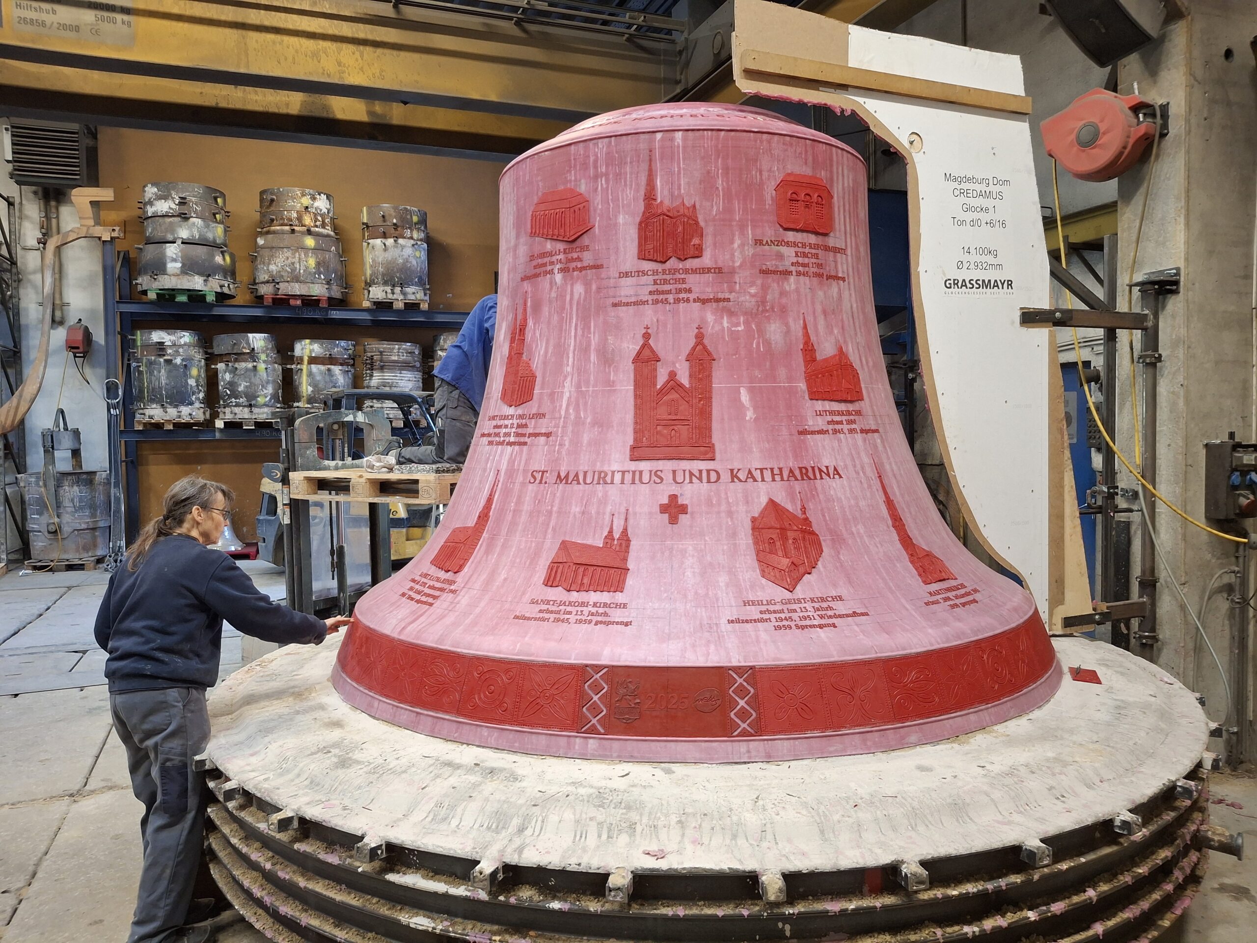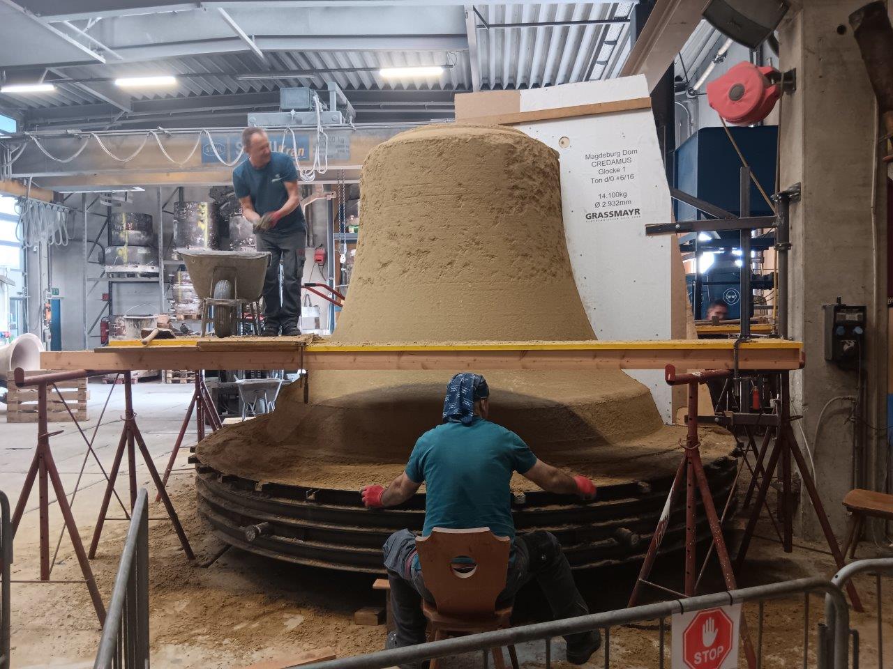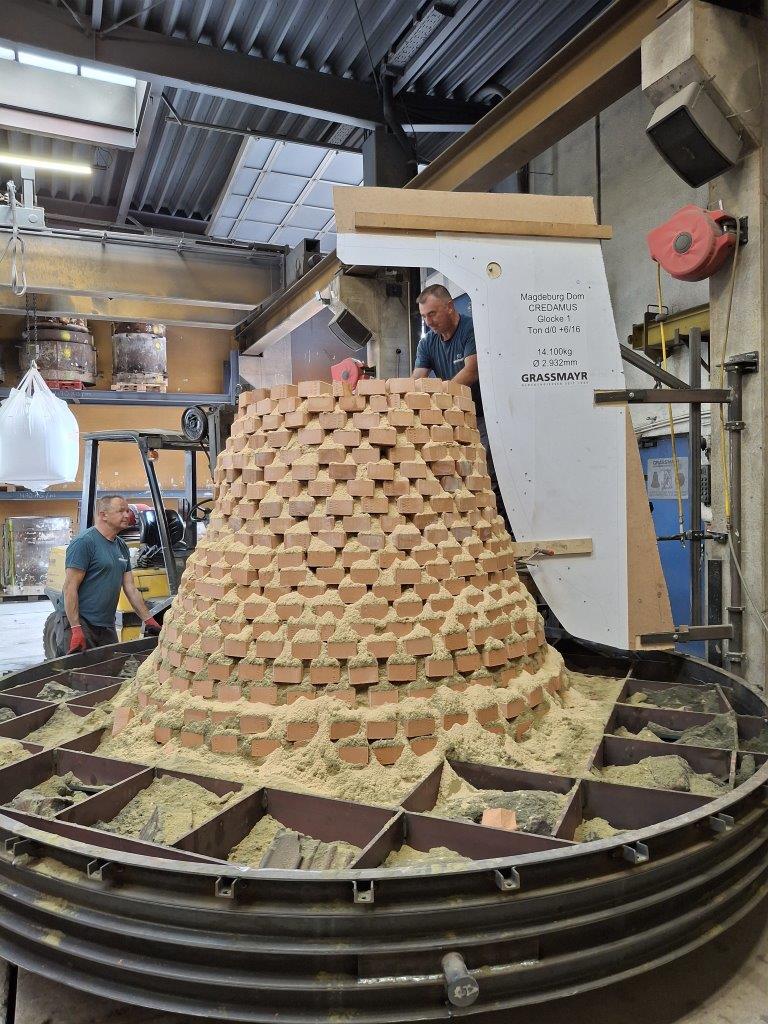 Als am 1. Oktober 2025 im Dom der Vertrag über den Guss der CREDAMUS der Öffentlichkeit präsentiert wurde, war er schon einen Monat alt und die Arbeiten an der Glockenform in vollem Gange. Die Glockengießerei arbeitet „auf Hochtouren“, um diesen letzten Guss für den Magdeburger Dom noch in diesem Jahr zu realisieren. Und es sieht gut aus.